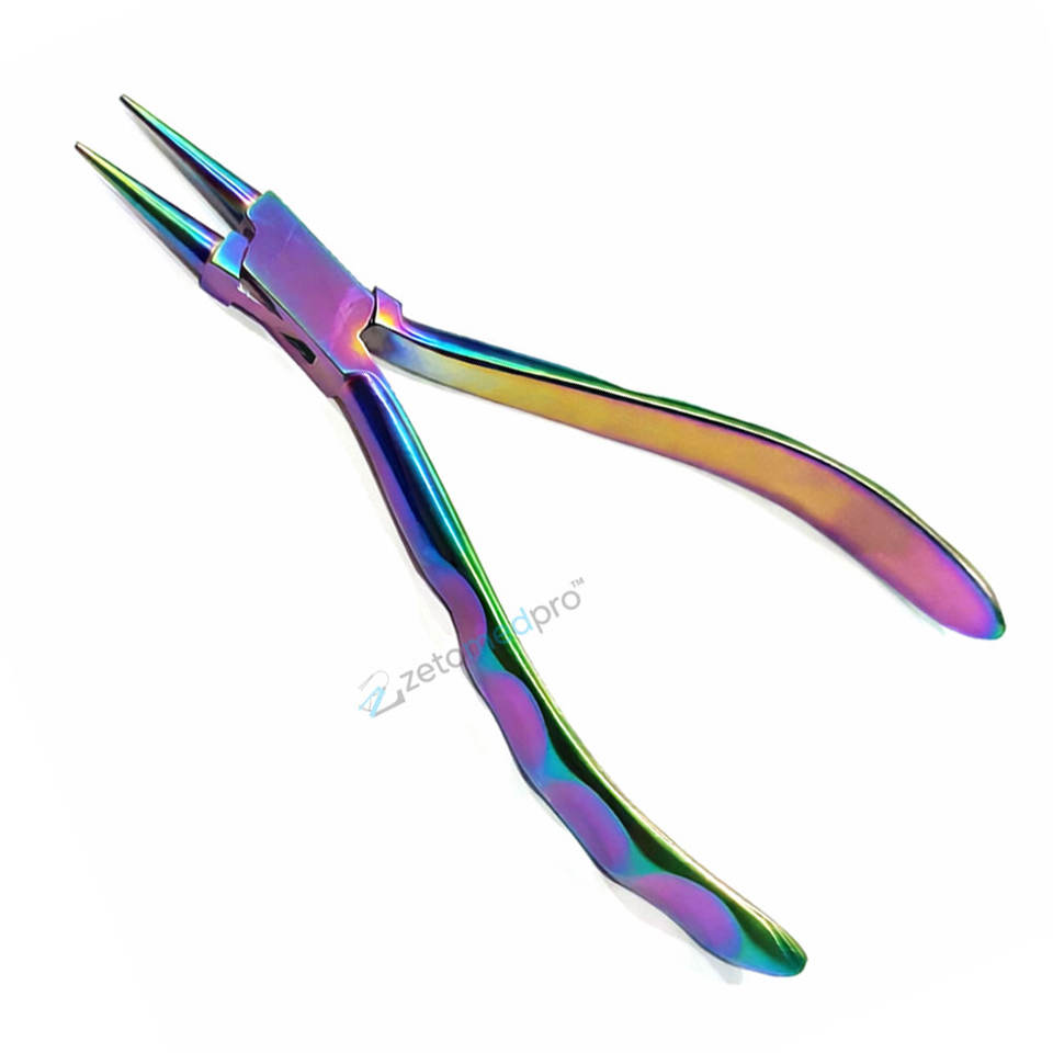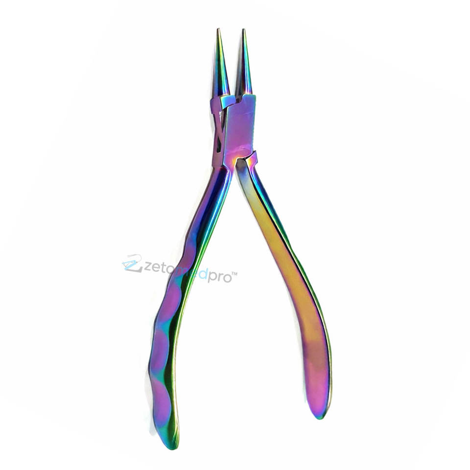 Pince à bec rond CHROMA en acier inoxydable de haute qualité, outil de précision pour la fabrication de bijoux avec revêtement en titane arc-en-ciel OEM