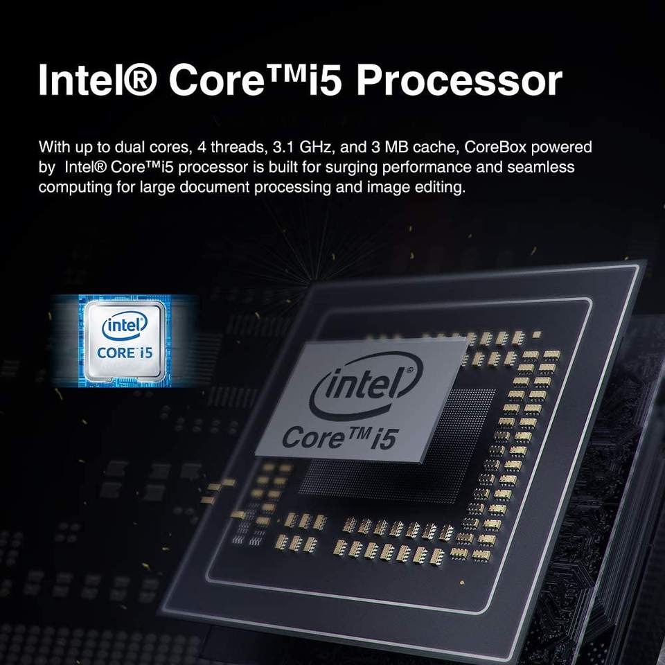 Mini PC de bureau CHUWI CoreBox 4K Win10, Intel Core I5-5257U, 8 Go de DDR3, 256 Go de SSD, Wi-Fi double bande 2,4 GHz/5 GHz, extensible à 2 To, disque dur 2,5 pouces