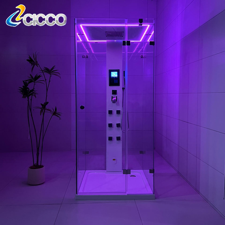 Cabine de douche à vapeur multifonctionnelle avec lumière LED couleur CICCO, plafond carré 90x90 cm, pour salle de bain