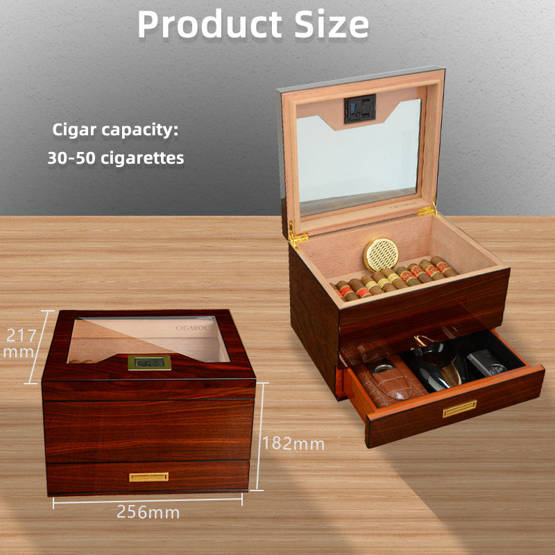 CIGAROL OEM ODM Boîte à cigares moderne en bois avec tiroir de rangement, technique de laque, couvercle à fenêtre, accessoires pour cigares, humidor