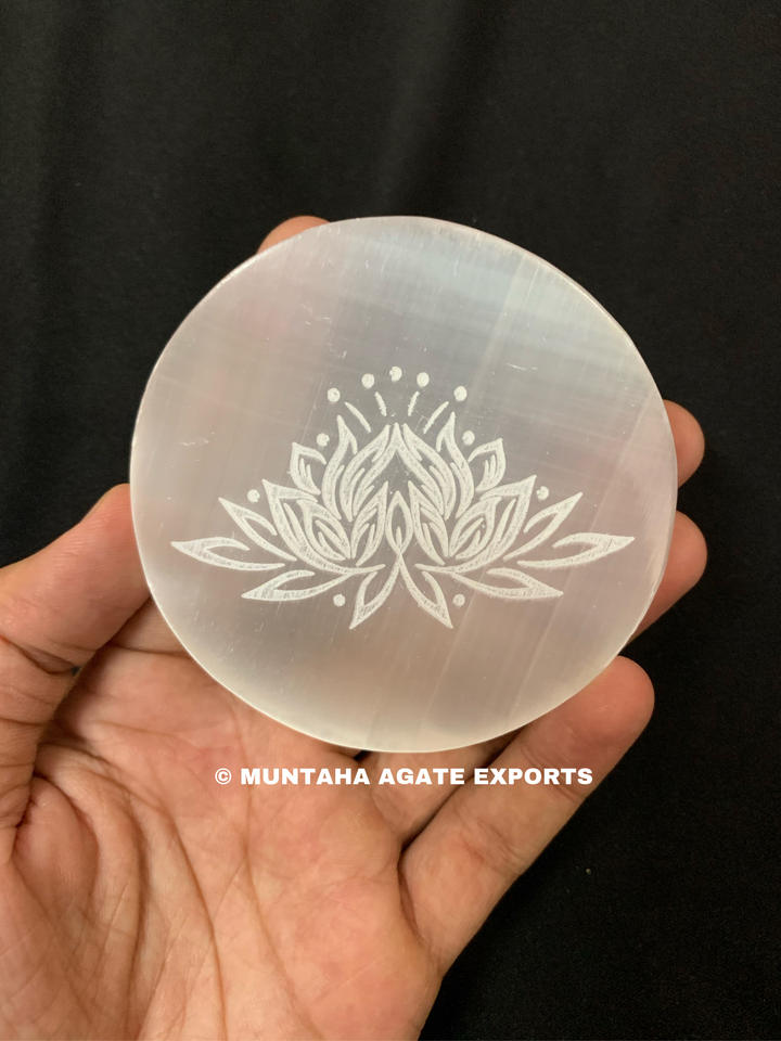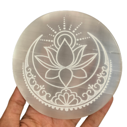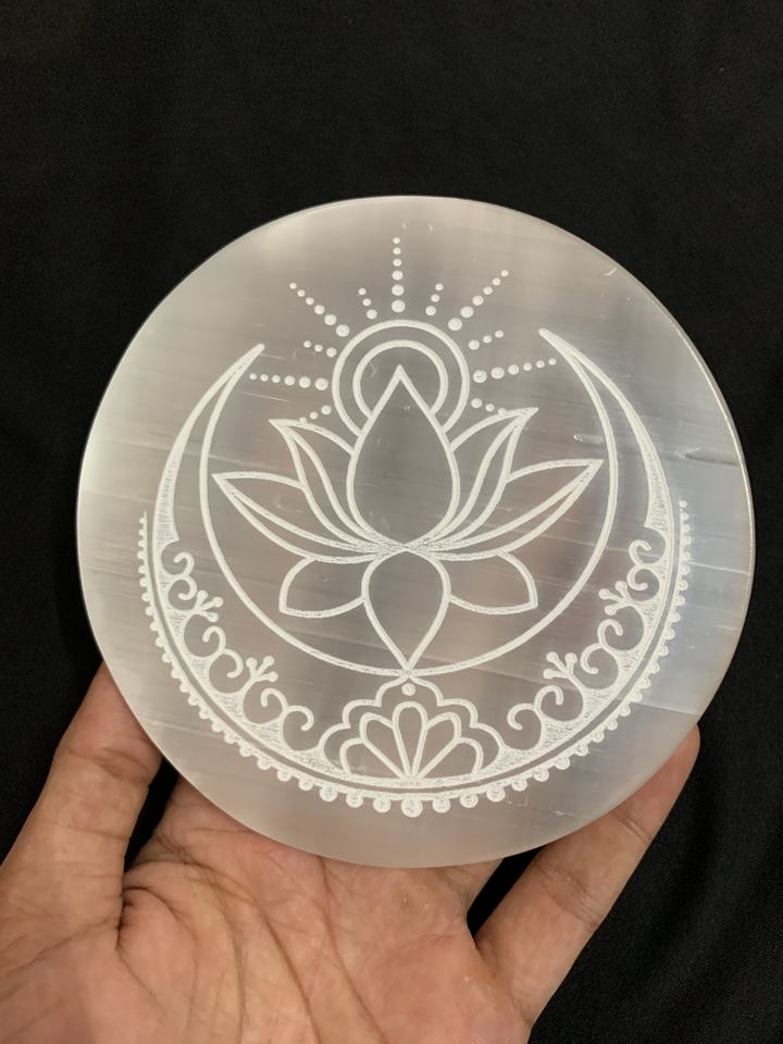 Nom du produit:PLAQUE GRAVÉE SELENITE MOON & LOTUS