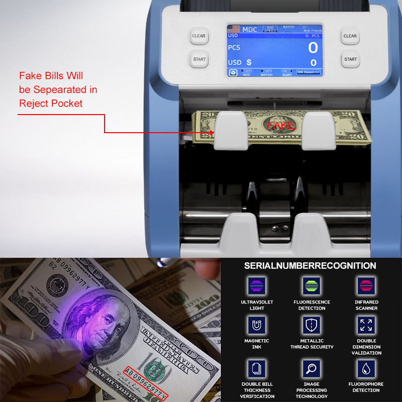 Machine de comptage de devises de poche CIS Mix 2 pour les dénominations AED SAR SYD LEB Compteur d'argent pour le tri des factures