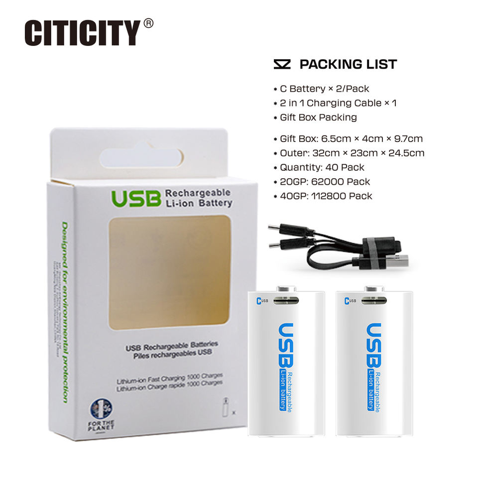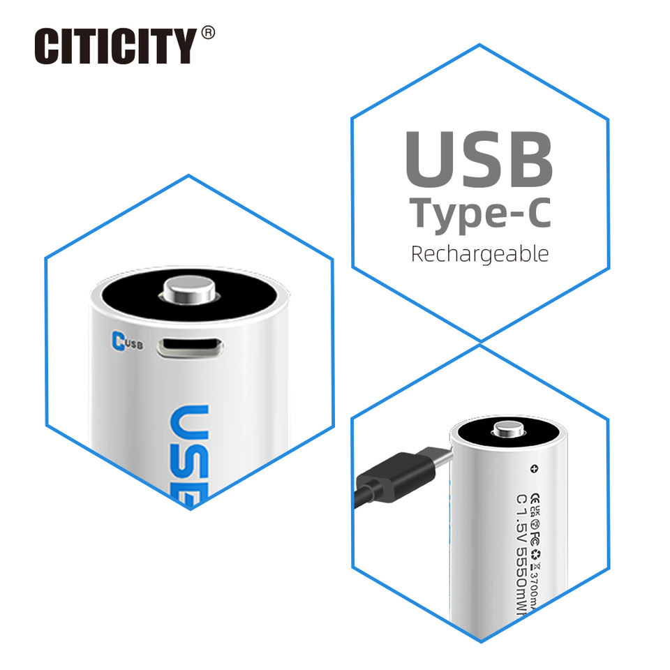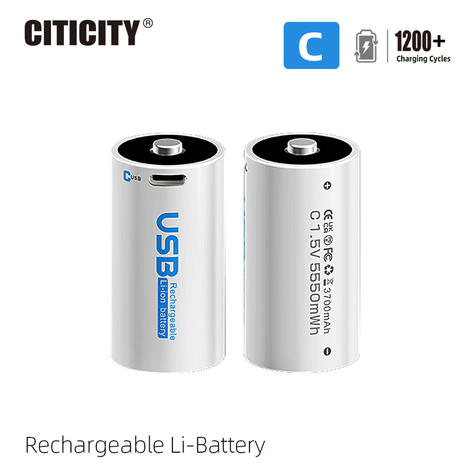 Batterie lithium-ion cylindrique rechargeable CITICITY 1,5 V 3000 mAh, chargeur USB inclus, charge rapide en 3,5 h, plus de 1200 cycles