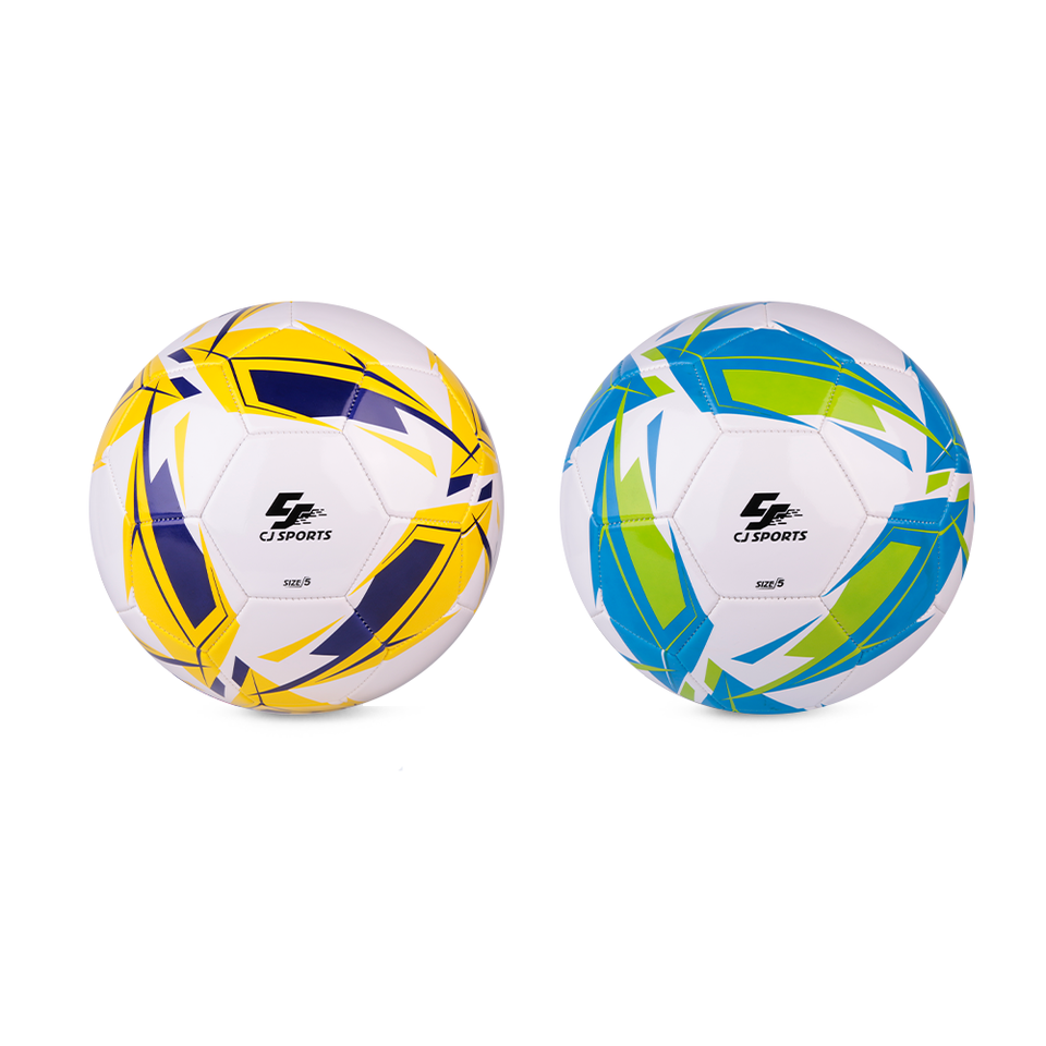 Ballon de football en PVC bleu jaune CJ Sports 350-370g Durable pour tous les âges-Matchs d'entraînement récréatifs au Vietnam