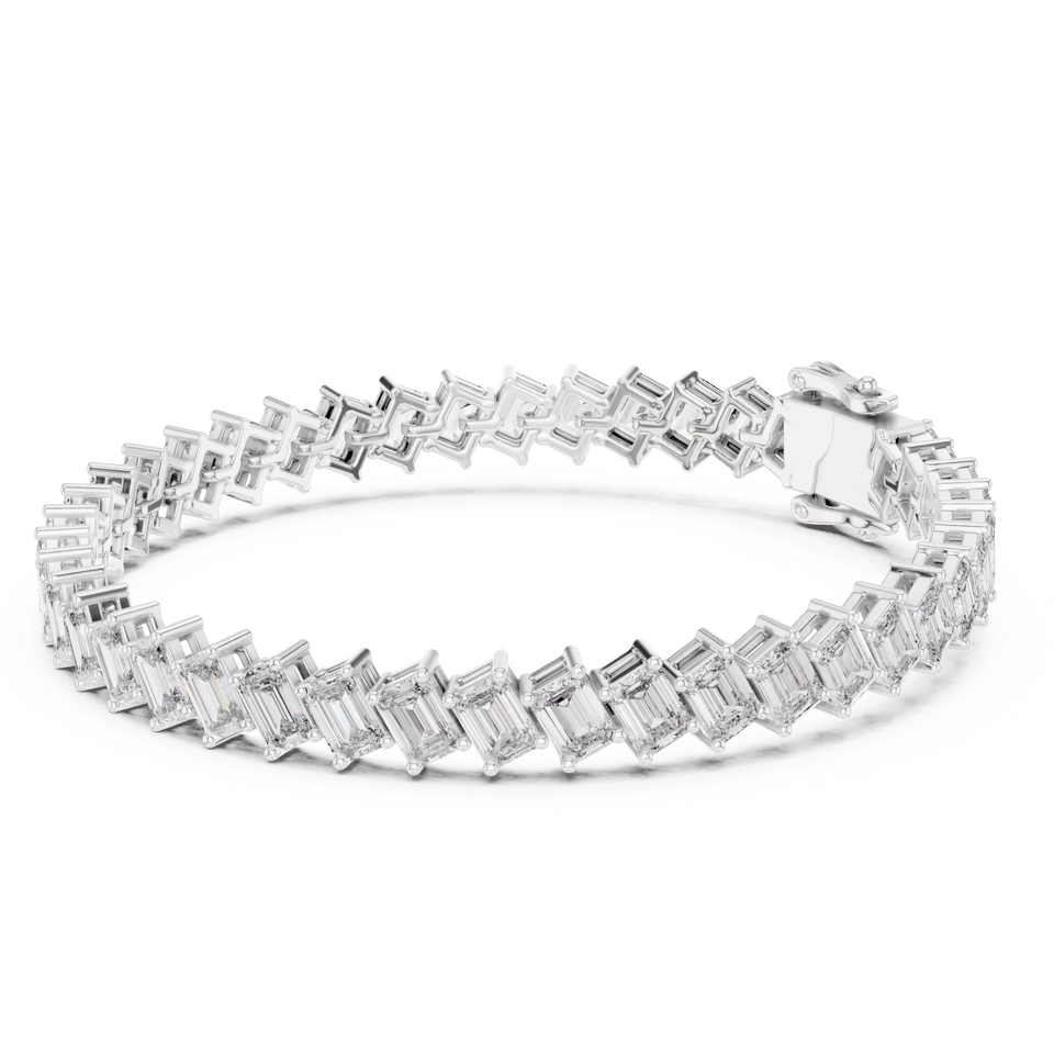 Ensemble de bracelets tennis classiques en or blanc 18 carats plaqué rhodium, sertis de diamants de laboratoire taille émeraude 7,5 carats, certifiés par un tiers