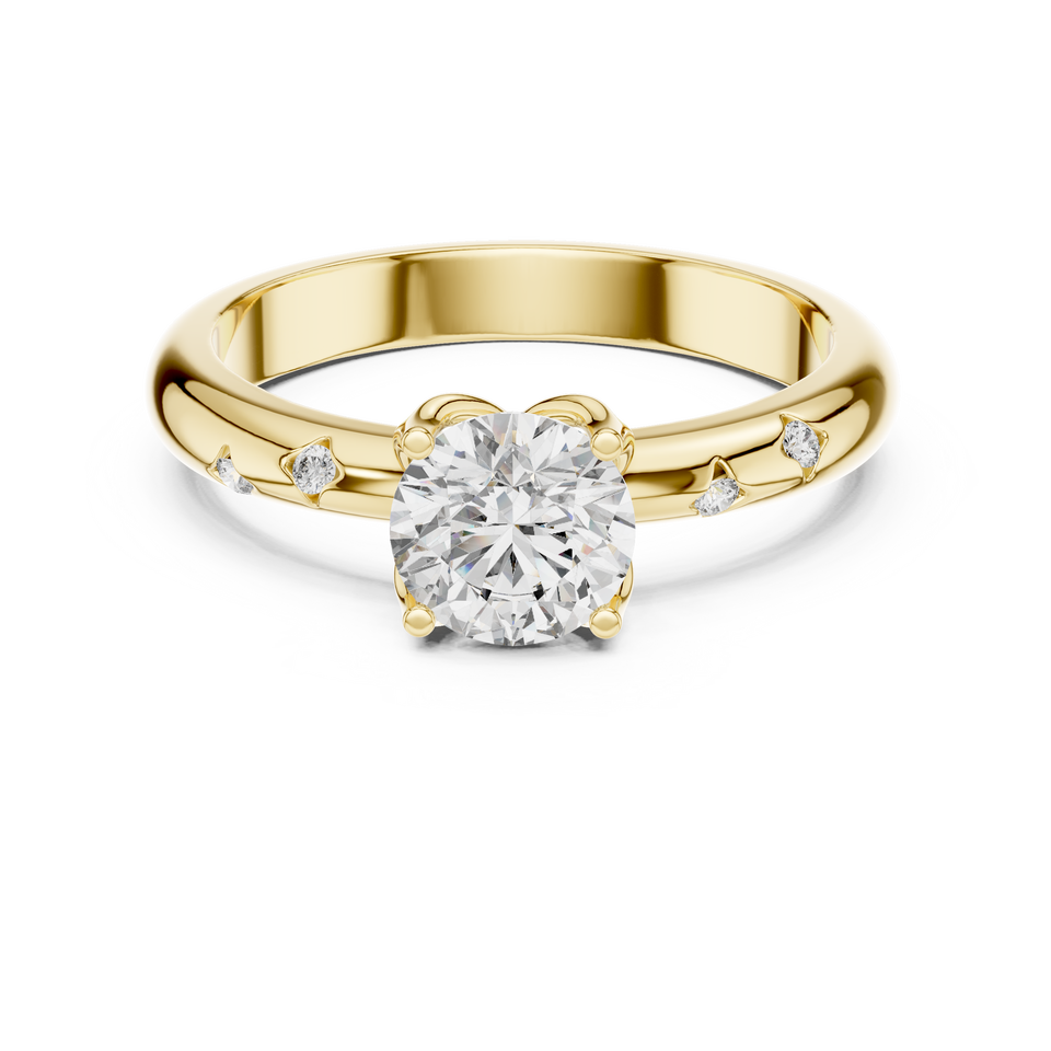 Bague solitaire élégante en or jaune 18 carats plaqué rhodium avec diamant de laboratoire 1 carat, sertie de pierres affleurantes, certifiée IGI, pour mariage de luxe