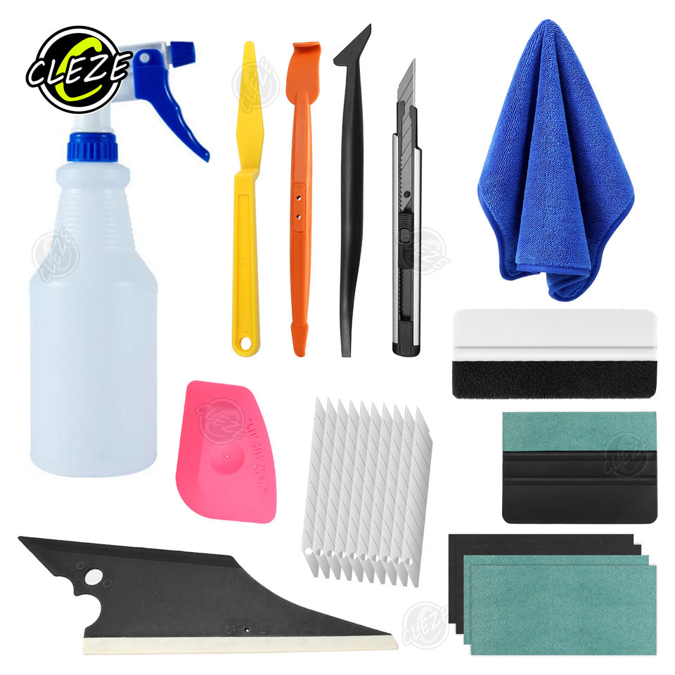 Les outils d'enveloppement de véhicule de haut niveau CLEZE comprennent une serviette de vaporisateur de raclette pour film de protection de peinture Kit d'installation d'enveloppement de vinyle