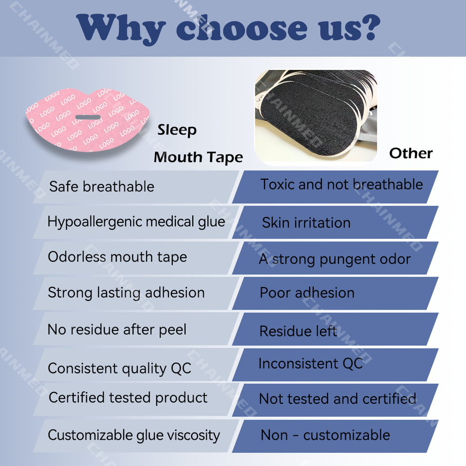 CM Emballage avec logo personnalisé Lèvres de sommeil de qualité supérieure hypoallergéniques fermées la nuit Ruban buccal pour dormir avec masque de sommeil
