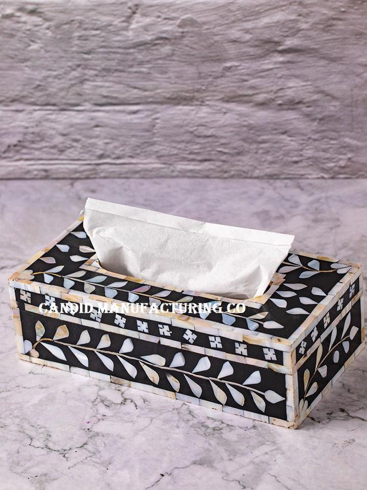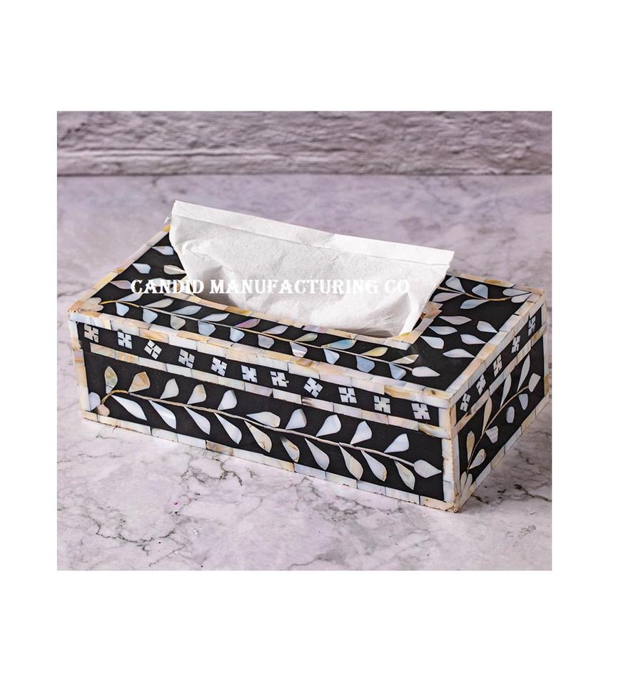 CMC Mother Pear Tissue Box Holder BONE INLAY Eco-friendly Customized Color/Size Classic Rectangle Multifunctional Tissue Box