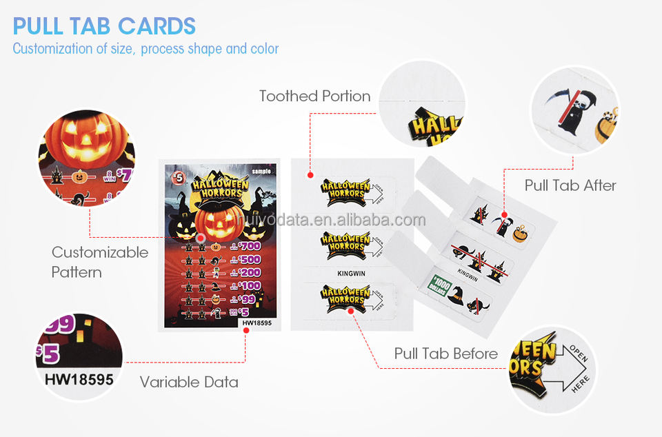 Impression CMJN 4 couleurs Loterie personnalisée Multi Window Pull Tabs Billet de jeu Pull Tab Card onglet de tirage personnalisé billets de loterie