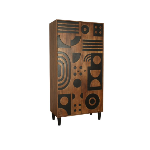 Almirah à deux portes en bois de manguier massif sculpté CNC Design moderne élégant pour le salon ou la chambre à coucher pour le rangement de l'atelier de restauration