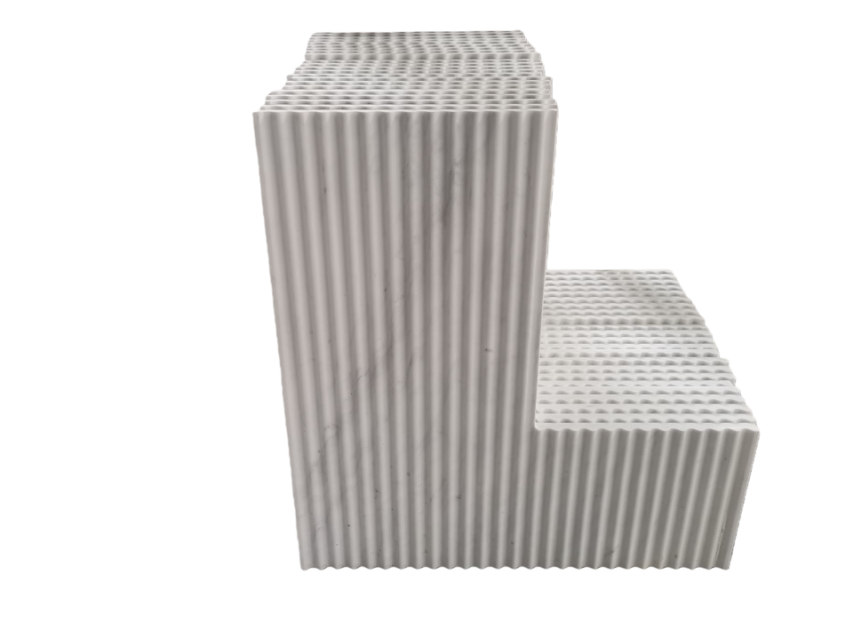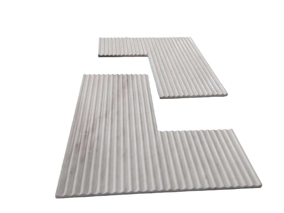 Carreau de marbre blanc courbé à rainures et motif cannelé