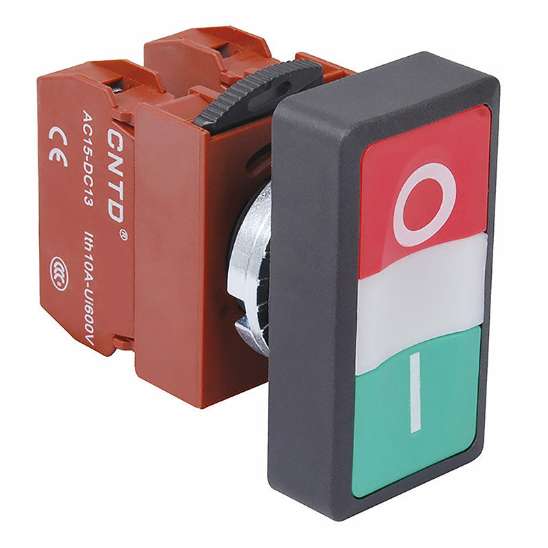 Interrupteur à bouton poussoir autobloquant CNTD Changde C2PNP, ouverture 22, combinaison 1NO, 1A/10A/16A max. Laiton et plastique 12 mm Momentané