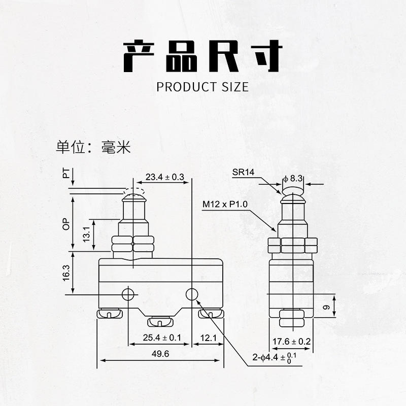 Micro-interrupteur électrique CM Changde CNTD CM-1307 à réinitialisation automatique, bouton-poussoir droit avec course de fin de course, en plastique