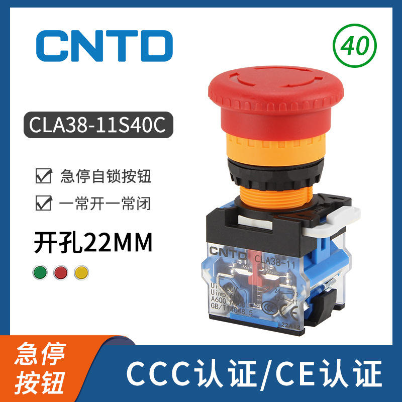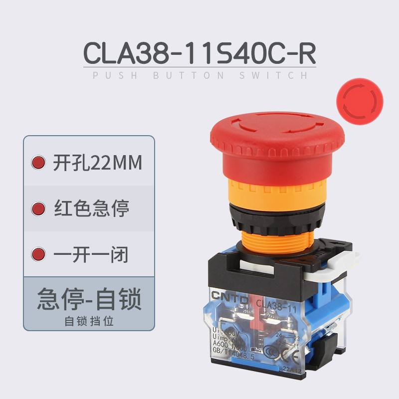 Interrupteur à bouton-poussoir électrique CNTD Changde CLA38-11S40C-R 6A Max. Bouton d'arrêt d'urgence à verrouillage automatique, niveau IP67, 22 mm