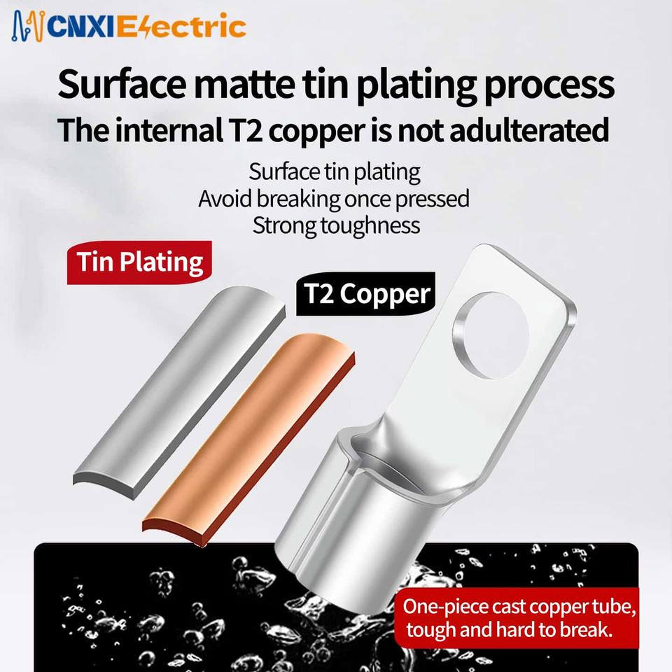 Connecteur de cosses en cuivre CNXI à sertir à froid bornes à anneau à languette carrée non isolée câble électrique pour diverses applications