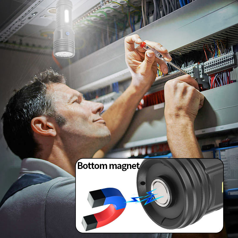 Lampe torche extérieure COB 12*LED avec batterie intégrée, haute luminosité, clip magnétique, lumière latérale COB, étanche, en ABS, pour travaux de réparation et garage