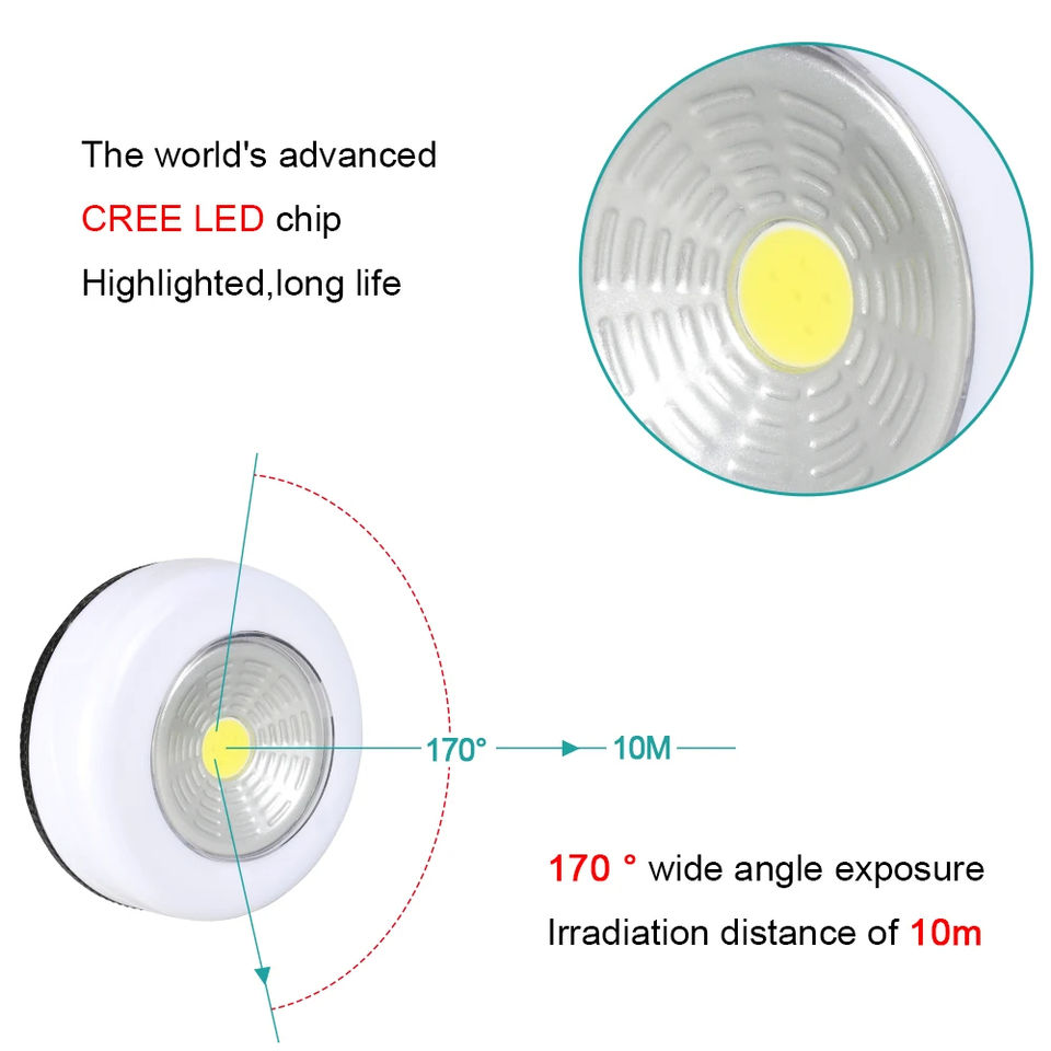 COB LED Under Cabinet Light With Adhesive Sticker Wireless Night Light Home Wall Lamp AAA Battery Powered Wardrobe Closet Lamp