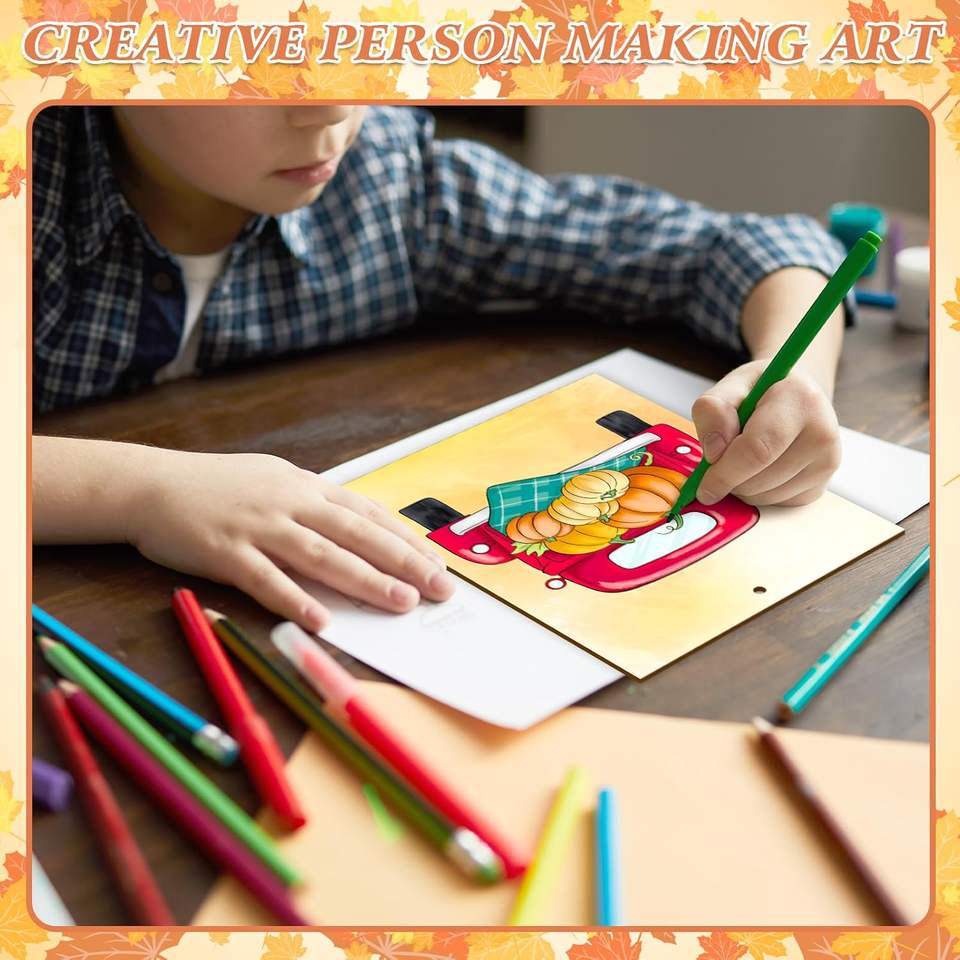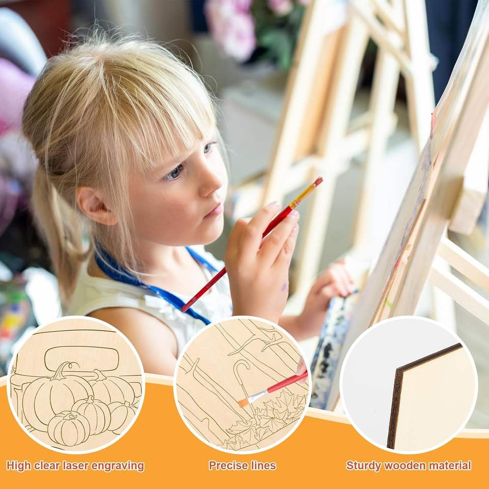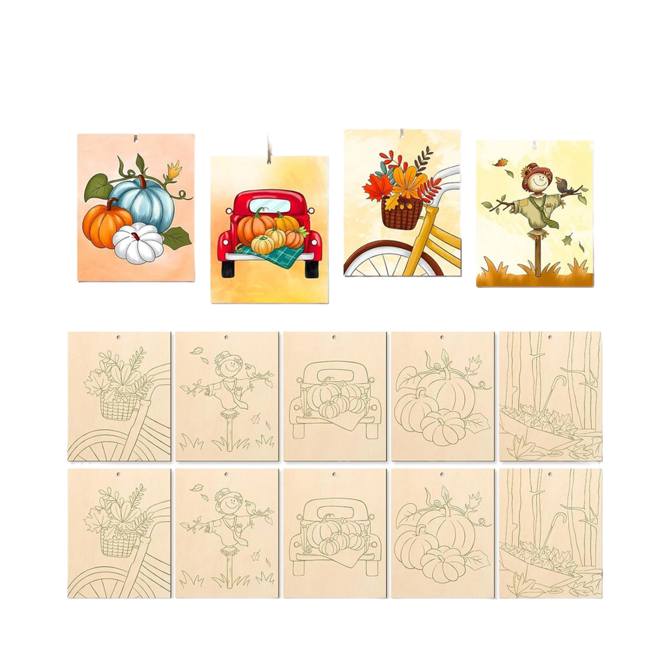 COCHIE 10 PIÈCES Grandes décorations en bois à peindre pour l'automne, en vrac, pour adultes et enfants, ornements et tranches de bois avec cordes