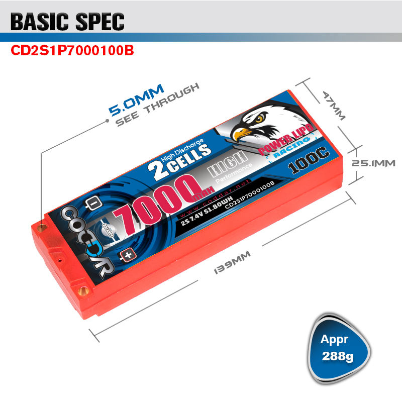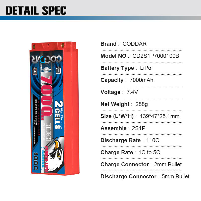 CODDAR 2S 7000MAH 7.4V 100C 200C 5mm Bullet Hard Case RC LiPo batterie 1/10 RC voiture bateau Tamiya sauterelle