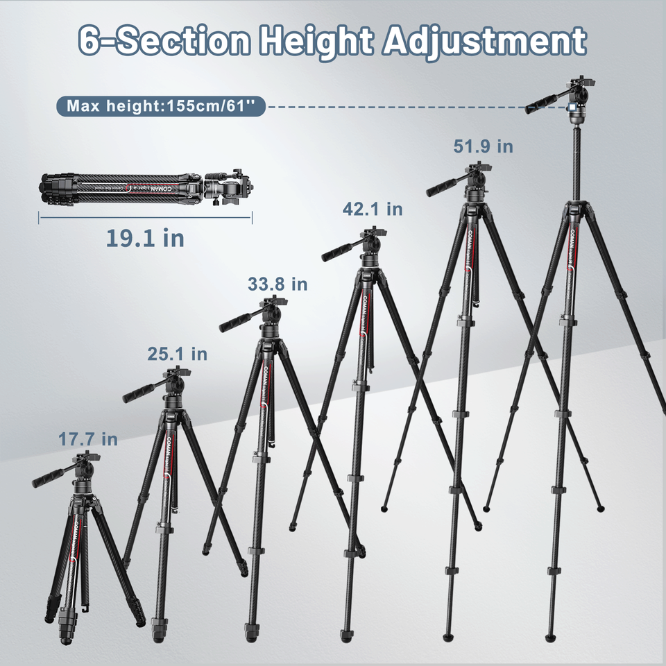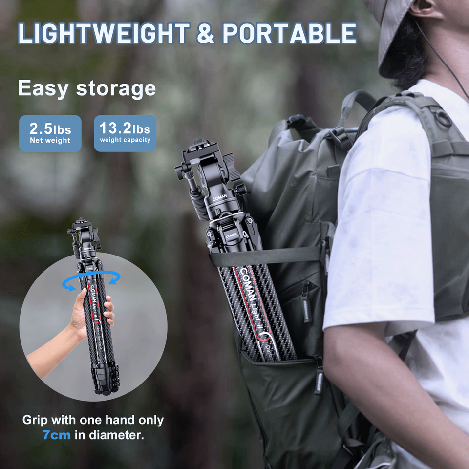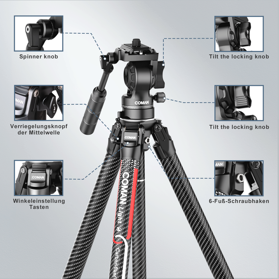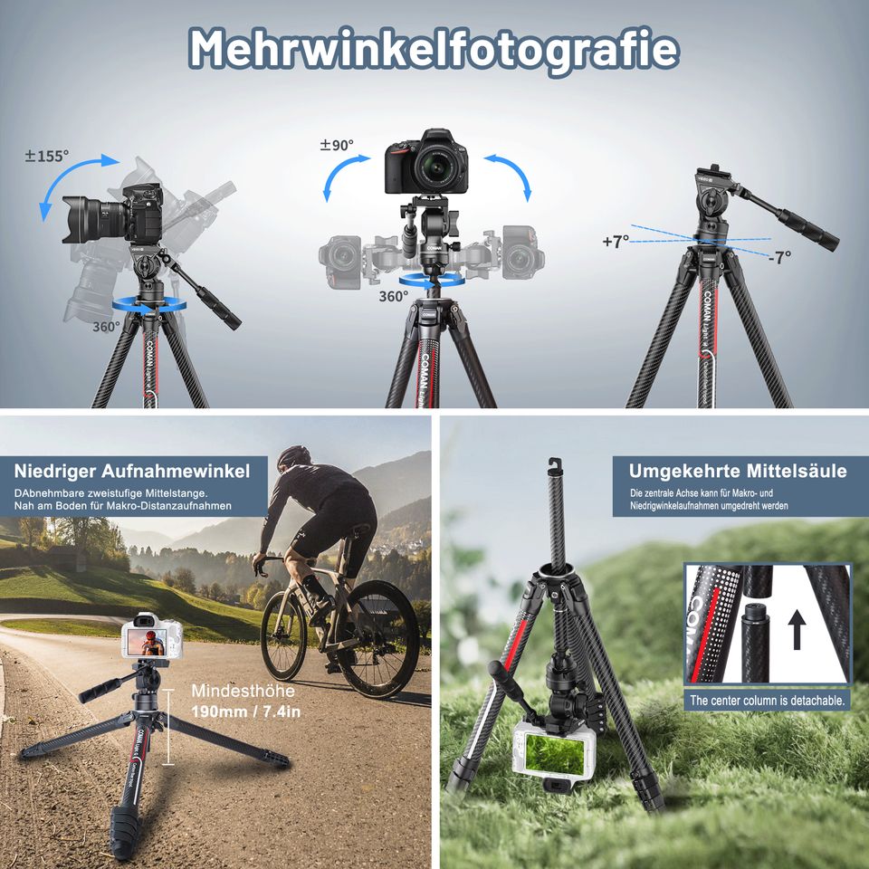 COMAN Light H 360 degrés rotule détachable trépied professionnel trépied en Fiber de carbone pour téléphone Canon Sony Nikon Live Streaming