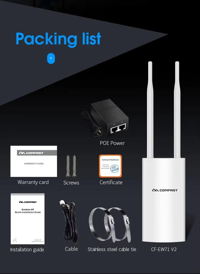 COMFAST CF-EW71 Point d'Accès Sans Fil Extérieur 2.4GHz 300Mbps Longue Portée Fonction Pare-feu Prix Usine Wi-Fi LAN WAN Externe