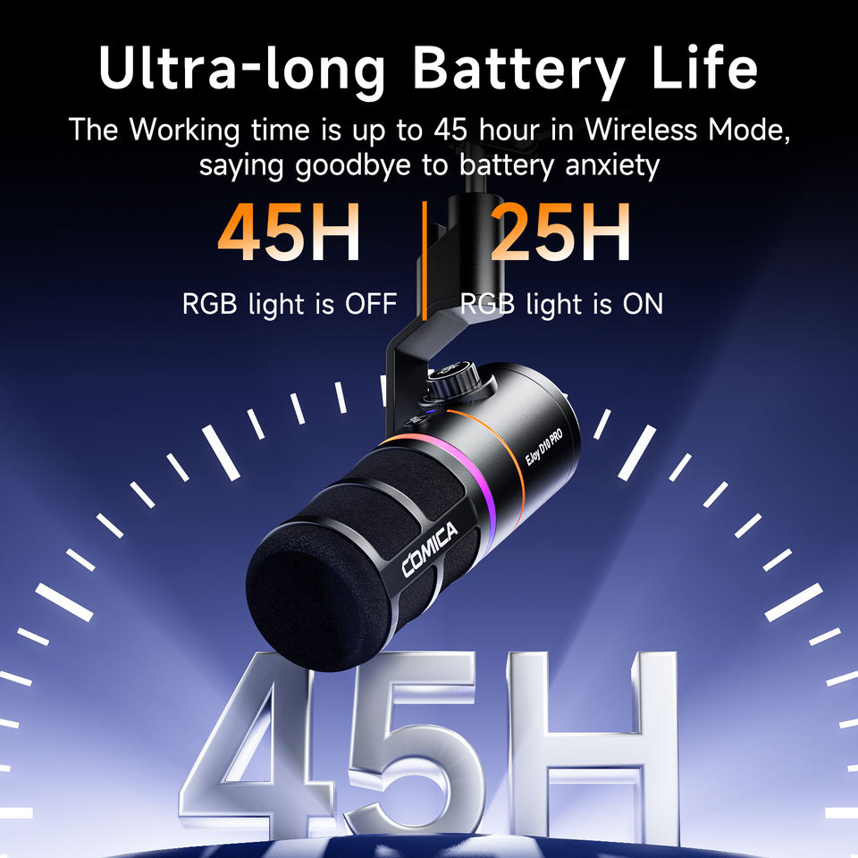 Microphone dynamique sans fil COMICA D10 PRO RGB cardioïde USB/XLR pour jeux, streaming et interviews avec réduction du bruit vocal