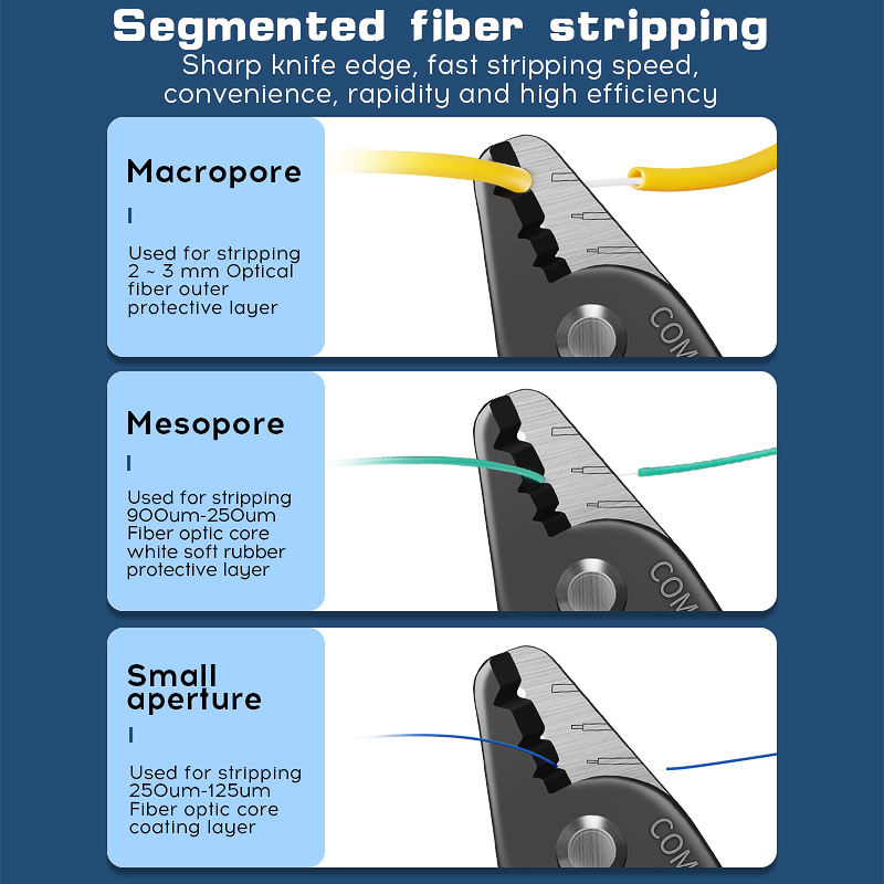 COMPTYCO VCFS-33 amélioré 5 couleurs trois ports dénudeur de câble FTTH Fiber Fusion épissage outil fibre nue cuir Fiber dénudeur