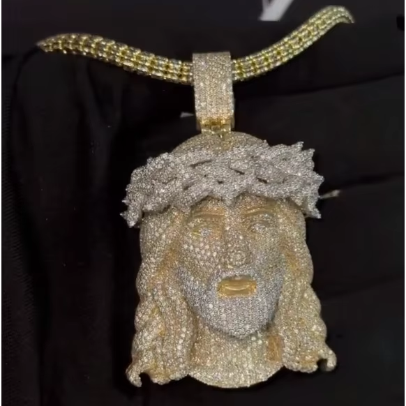 CONCEPTION Pendentif Tête de Jésus Hip Hop de Luxe Personnalisé en Argent Sterling 925 Plaqué Or avec Moissanite Certifiée GRA pour Hommes et Femmes