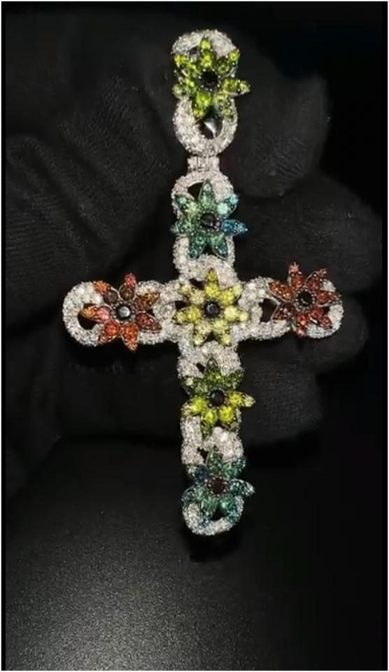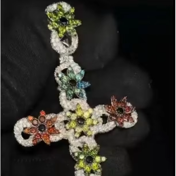 CONCEPTION Collier pendentif croix unisexe en argent sterling haut de gamme, personnalisé avec moissanite, design floral 3D, plaqué or rose, style hip-hop