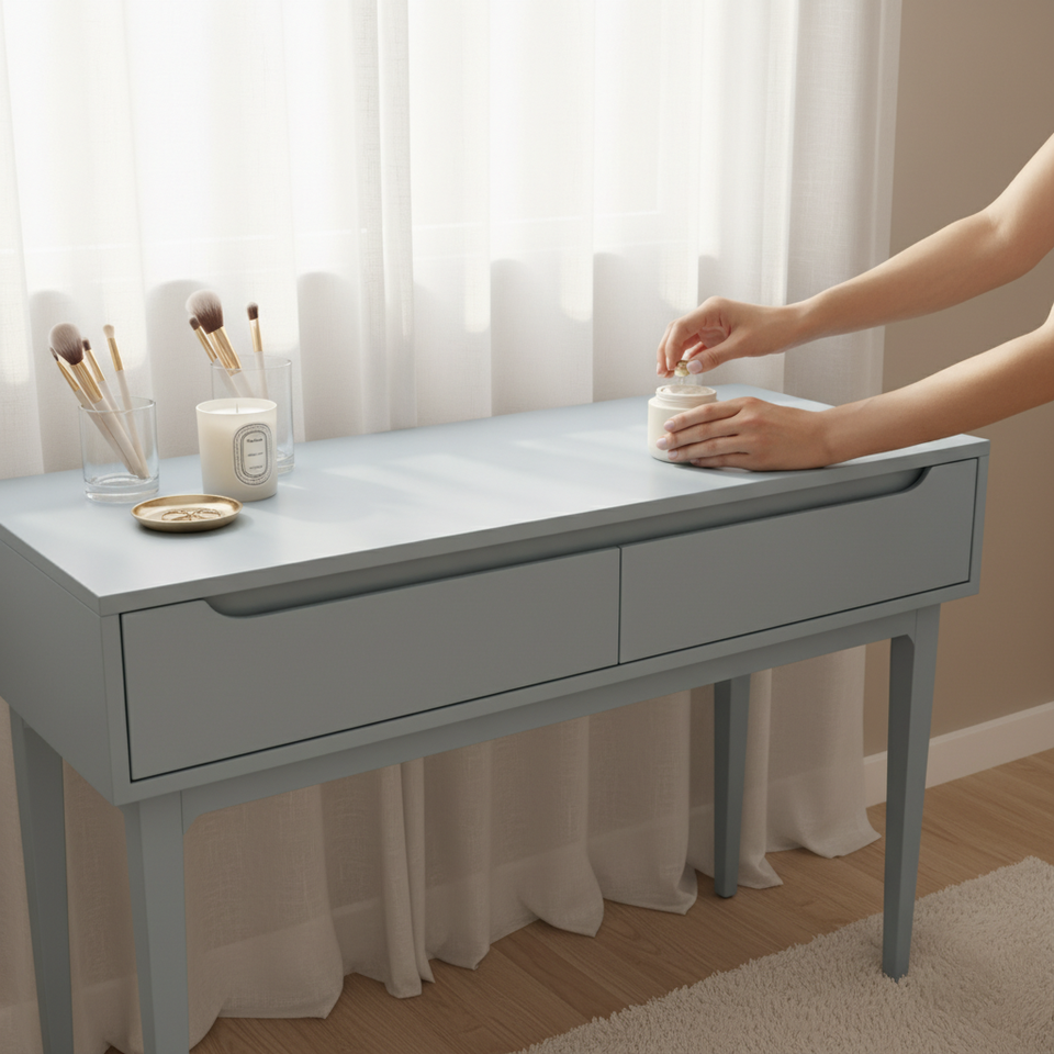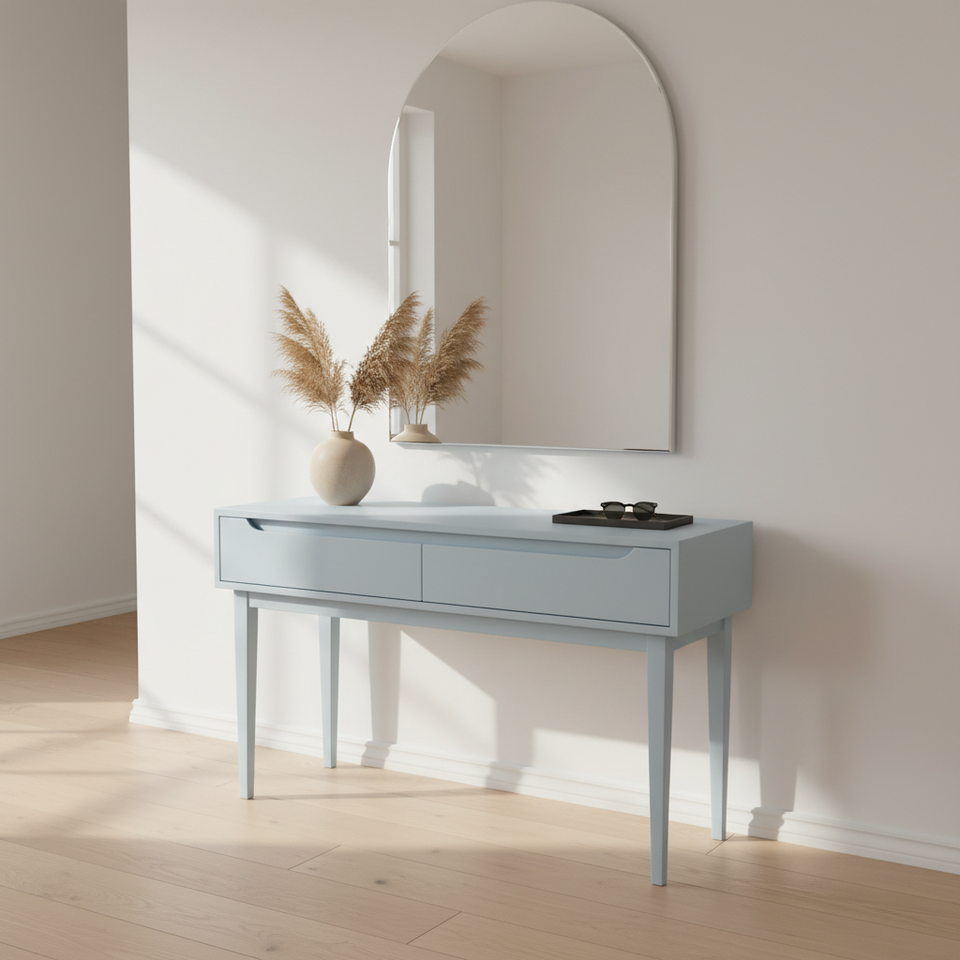 Table console moderne avec 2 tiroirs en chêne massif, meuble de salon écologique, table d'appoint pour espaces modernes