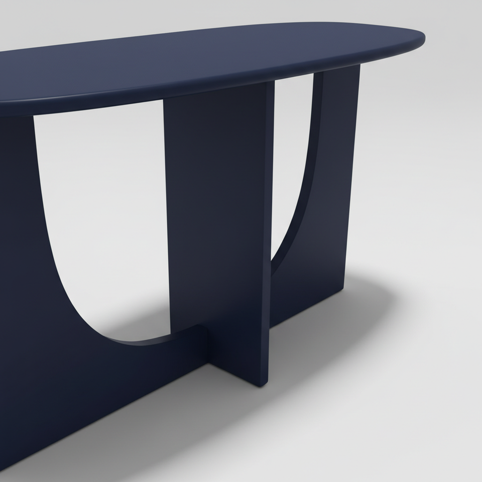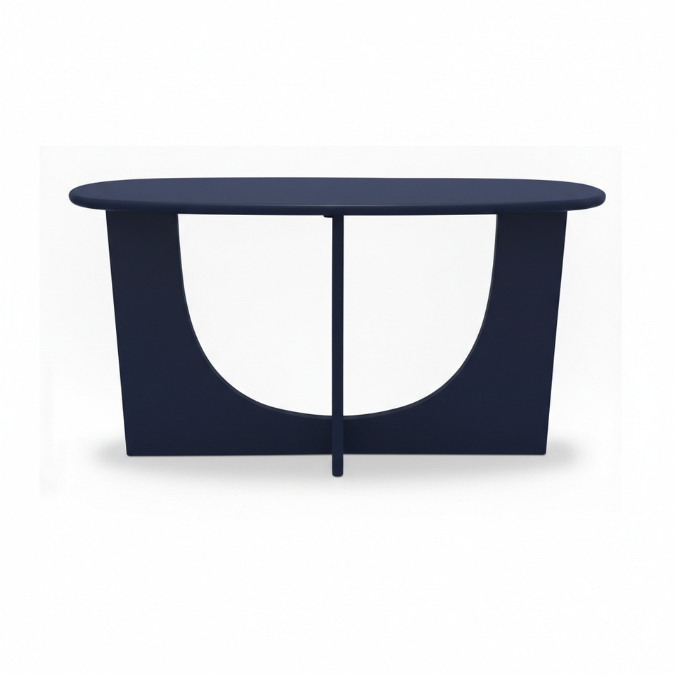 Table console, table d'appoint, table basse moderne en bois d'hévéa durable, MDF et placage de chêne pour salon, chambre à coucher, décoration intérieure, bleu marine