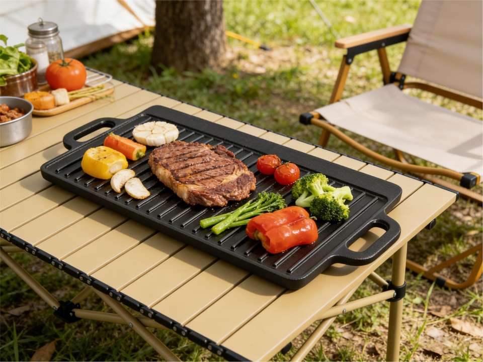 Nom du produit:Plat de cuisson réversible double face en fonte avec gril et plaque de cuisson