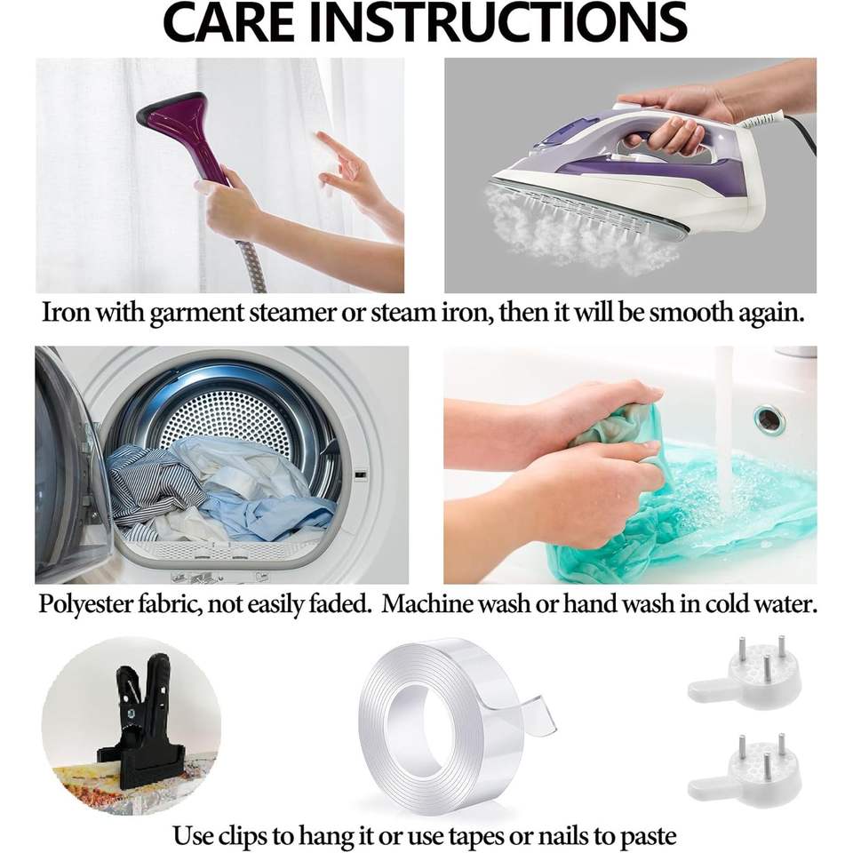 Machine Wash, Iron on Low HeatProduct Care Instructions