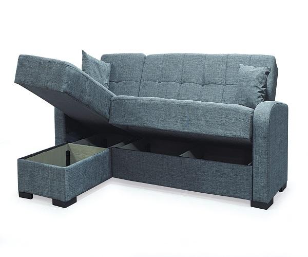 Modern Fabric L-Shape Corner Sofa Bed Set Three Seat Tufted Back Solid Wood Frame Storage Cushion Small Size Living Room