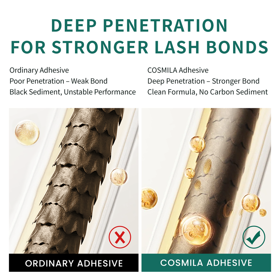 Colle pour extensions de cils COSMILA HQ Free 99,8% Monomère japonais <0,5s Séchage rapide Liquide Vegan Sans cruauté Imperméable Anti-huile Tout