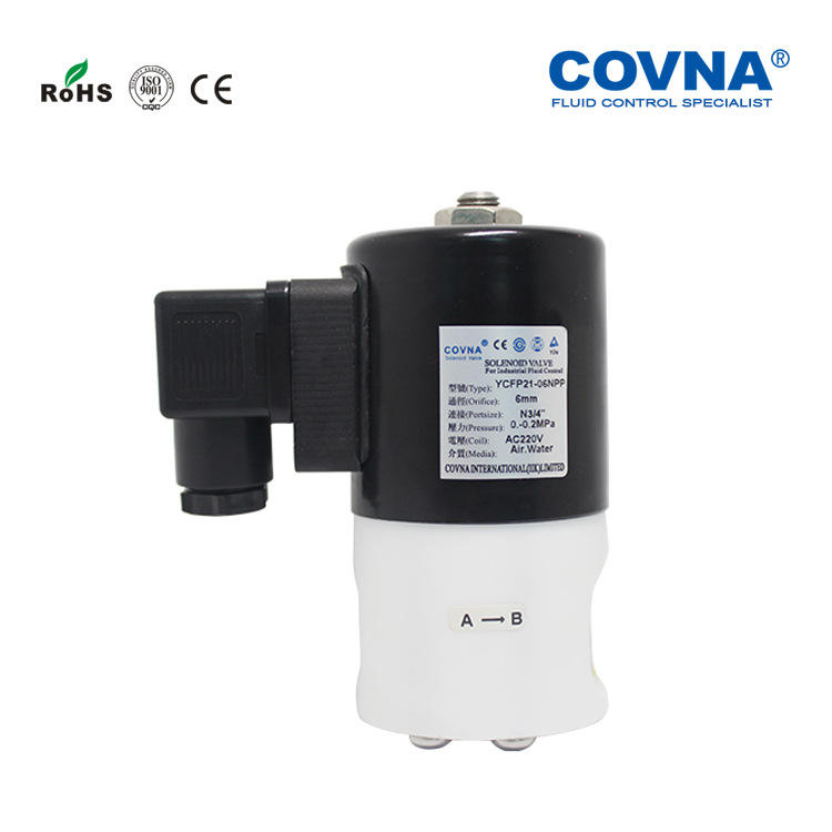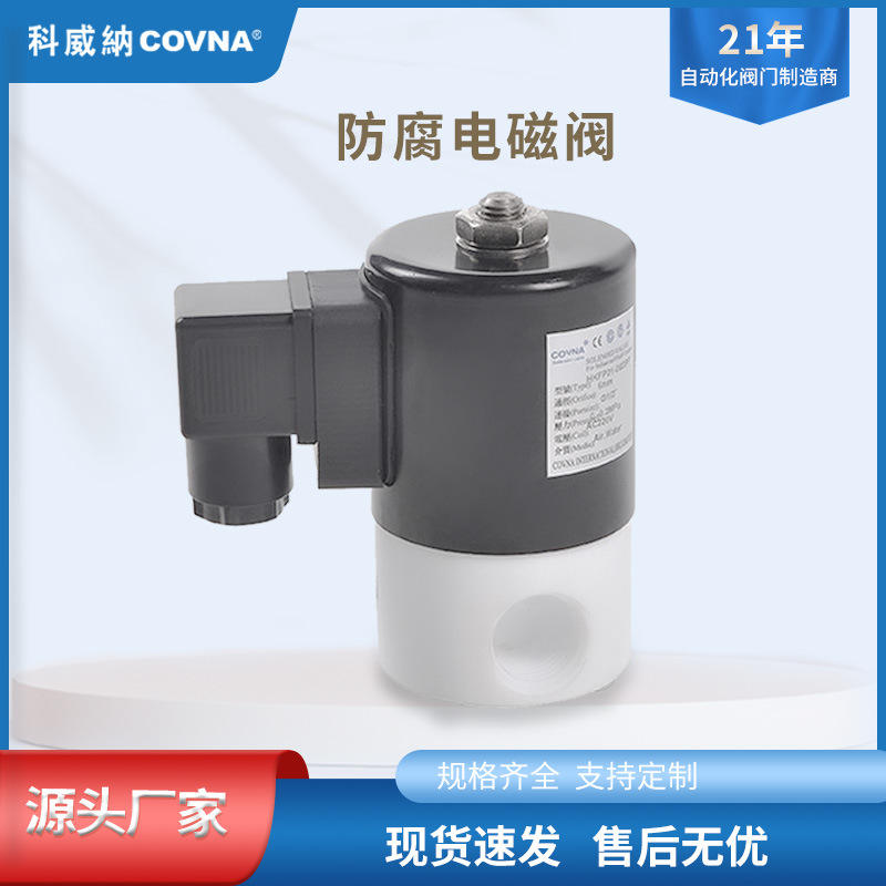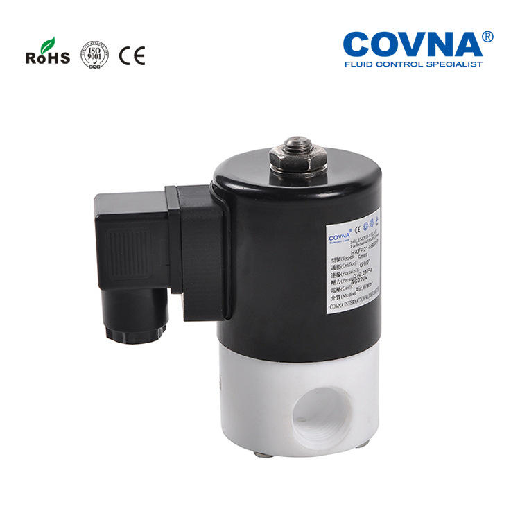 Vanne solénoïde à action directe COVNA, 2 voies, 2 positions, en plastique résistant à la corrosion, fermeture normale, résistante aux alcalis/acides forts, fabriquée