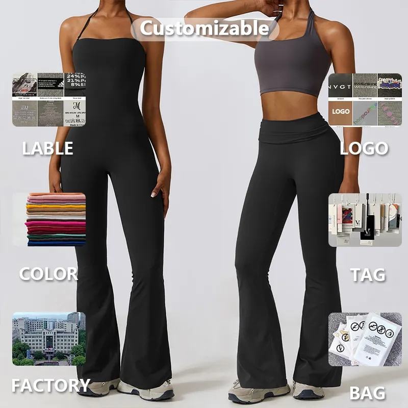 CP-CLT8393 Nouvelle combinaison évasée une pièce à col halter, effet push-up fessier, pour le fitness, le yoga et le sport, pour femmes