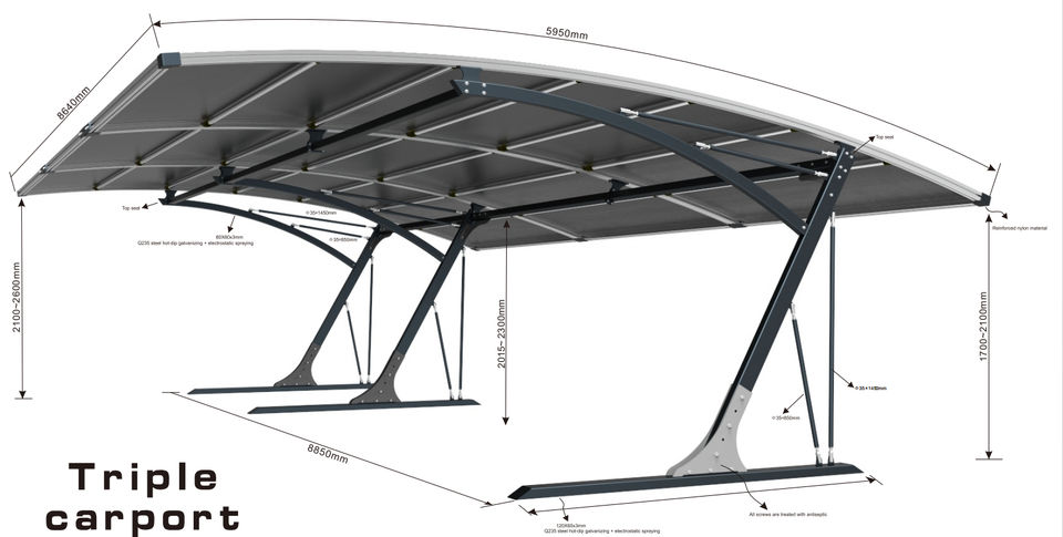 Abri de voiture triple CP3 - 9,0 x 5,9 m ou taille personnalisée - Abri de voiture en aluminium