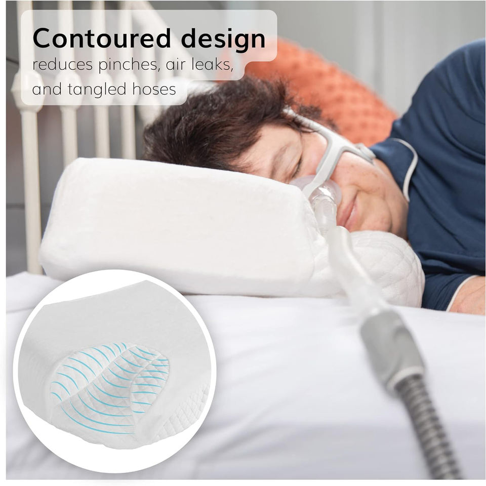 Oreiller CPAP pour dormeurs latéraux, mousse à mémoire de forme douce, orthopédique, contour, posture, cale pour lutter contre le ronflement