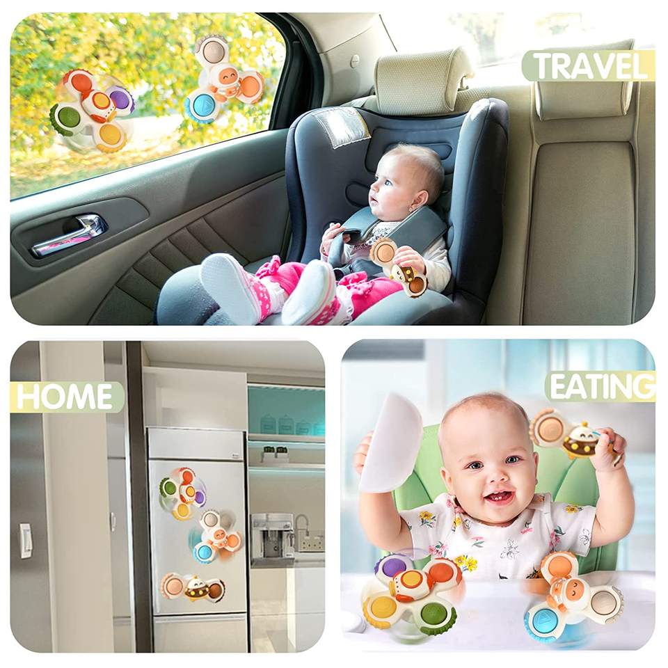 CPC 3 Pcs Baby Cartoon Fidget Spinner Suction Toys Suction Cup Baby Spinner for High Chair