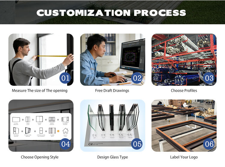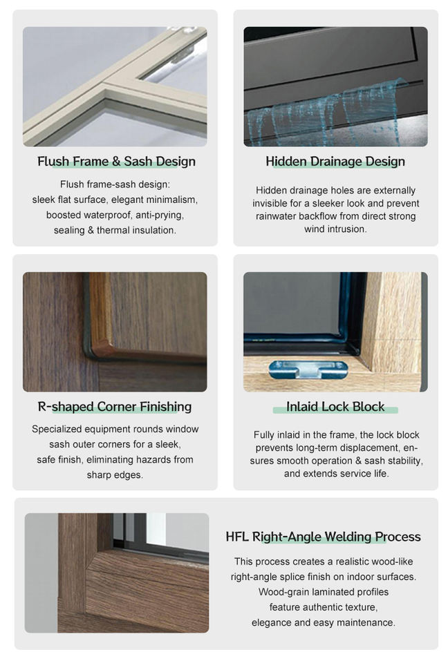 Fenêtres à battants à double vitrage CQ, structure thermique multi-chambres, fenêtre à battants en aluminium, économie d'énergie, fenêtres oscillo-battantes