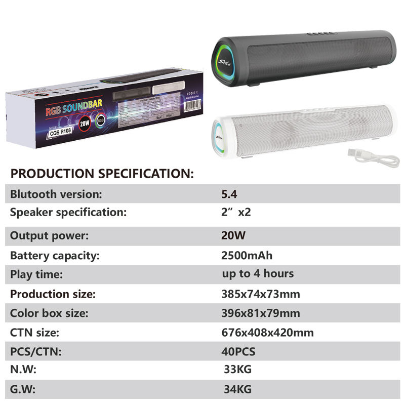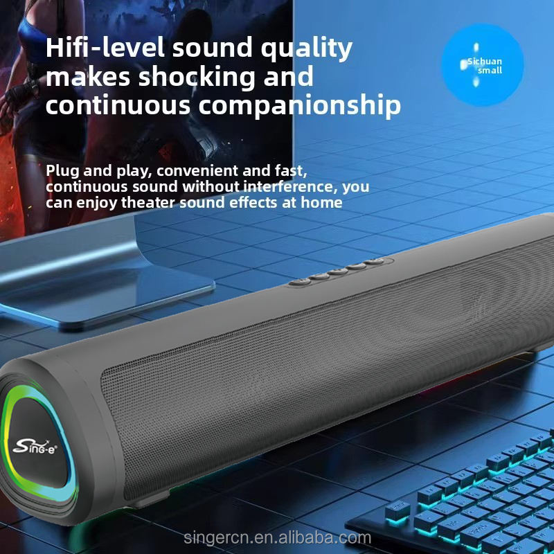 Barre de son CQS-R108 pour TV de bureau, haut-parleur Bluetooth auxiliaire USB, système home cinéma, barre de son surround, haut-parleurs pour PC, TV, ordinateur, enceinte de bureau