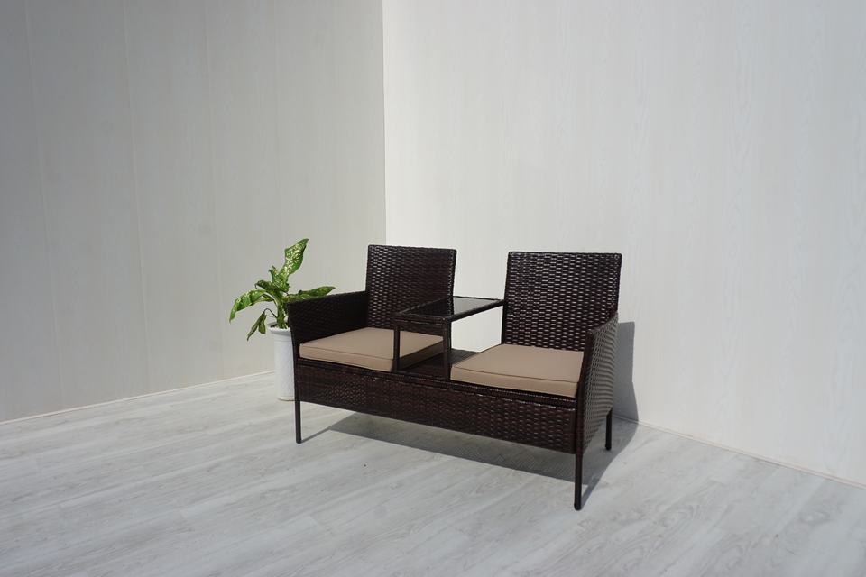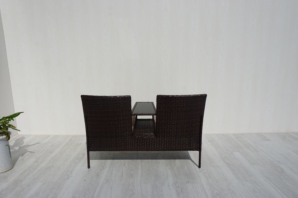 CR00020 Banc de jardin moderne 2 places en fer et rotin tressé avec table intégrée pour chambre à coucher – Direct usine au Vietnam