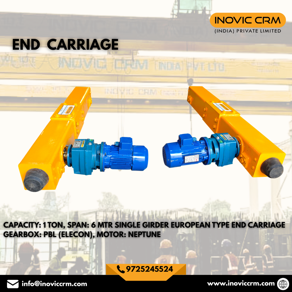 Pont roulant monopoutre de type européen avec chariot d'extrémité, capacité 5 tonnes, portée 14m, boîte de vitesses ELECON avec moteur et télécommande
