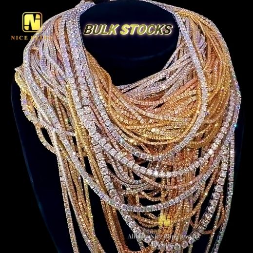 CRAZY FLASHY Factory Stocks en vrac Moissanite Tennis Collier Bracelet MOINS CHER DANS L'HISTOIRE Hip Hop Bijoux Tennis Chaîne