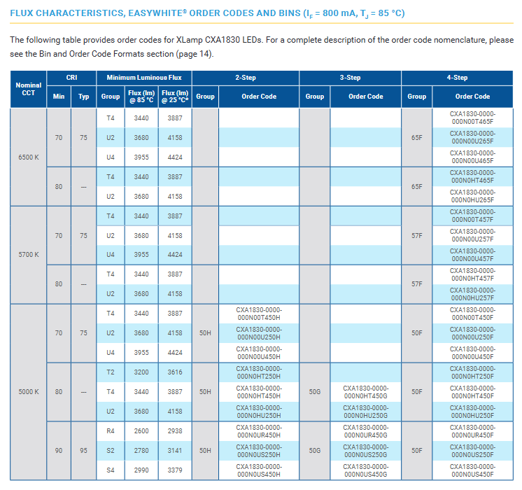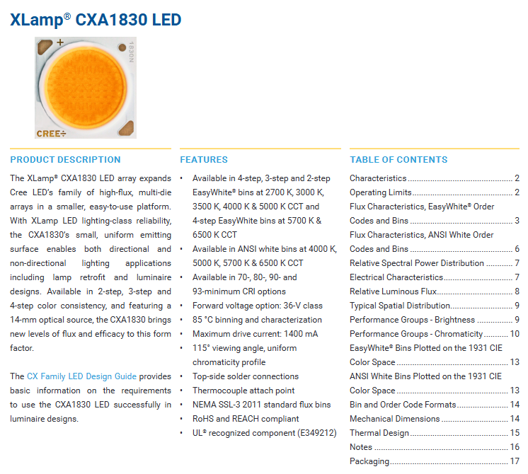 Product name:XLamps CXA1830 LED
