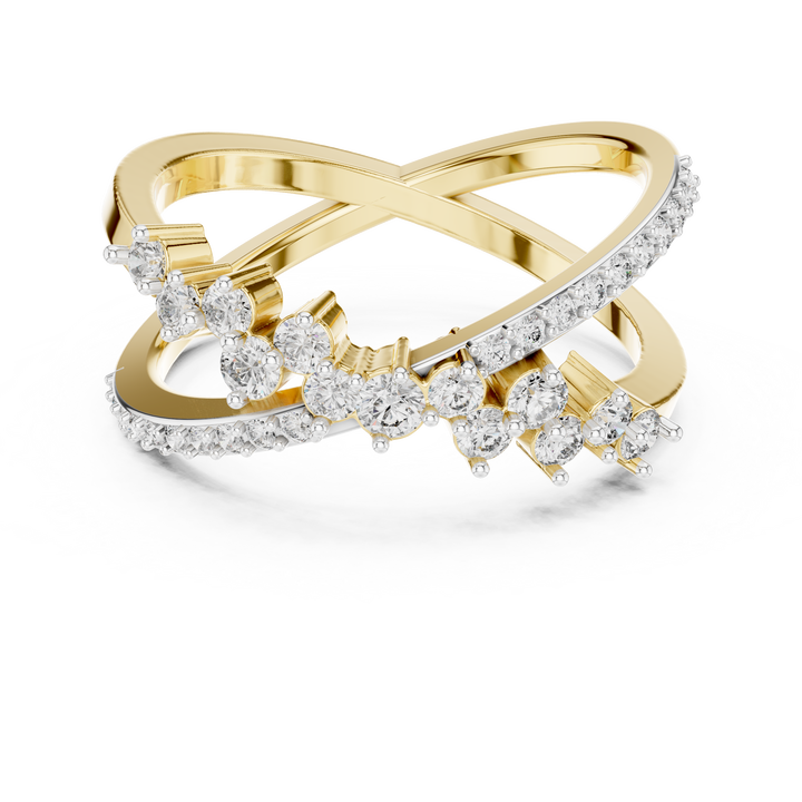 Bague pour femme en or jaune 18 carats plaqué rhodium avec cluster de diamants de laboratoire entrecroisés, idéale pour mariage, fiançailles, soirées et événements glamour