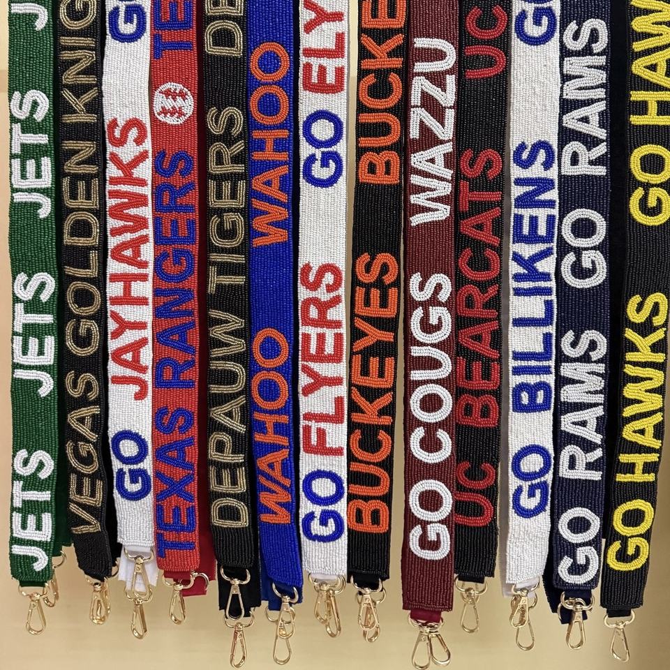 CRYSTAL CRAFT Sangle brodée personnalisée avec logo d'équipe, faite à la main, réglable, bandoulière, ceinture décorative perlée pour sac à main, personnalisable