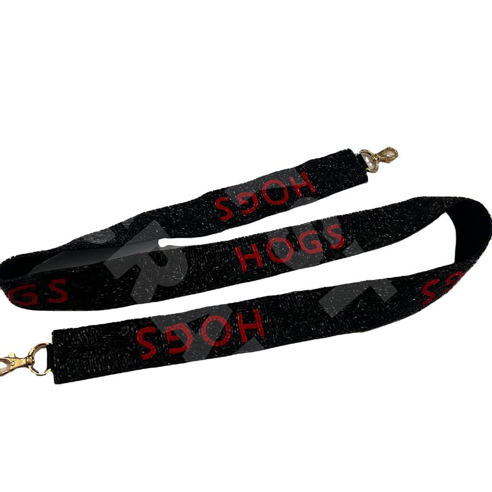 CRYSTAL CRAFT Sangles de sac personnalisées faites à la main brodées de perles de rocaille 'Hook Em Horns' Accessoire de mode Sangle de sac perlée